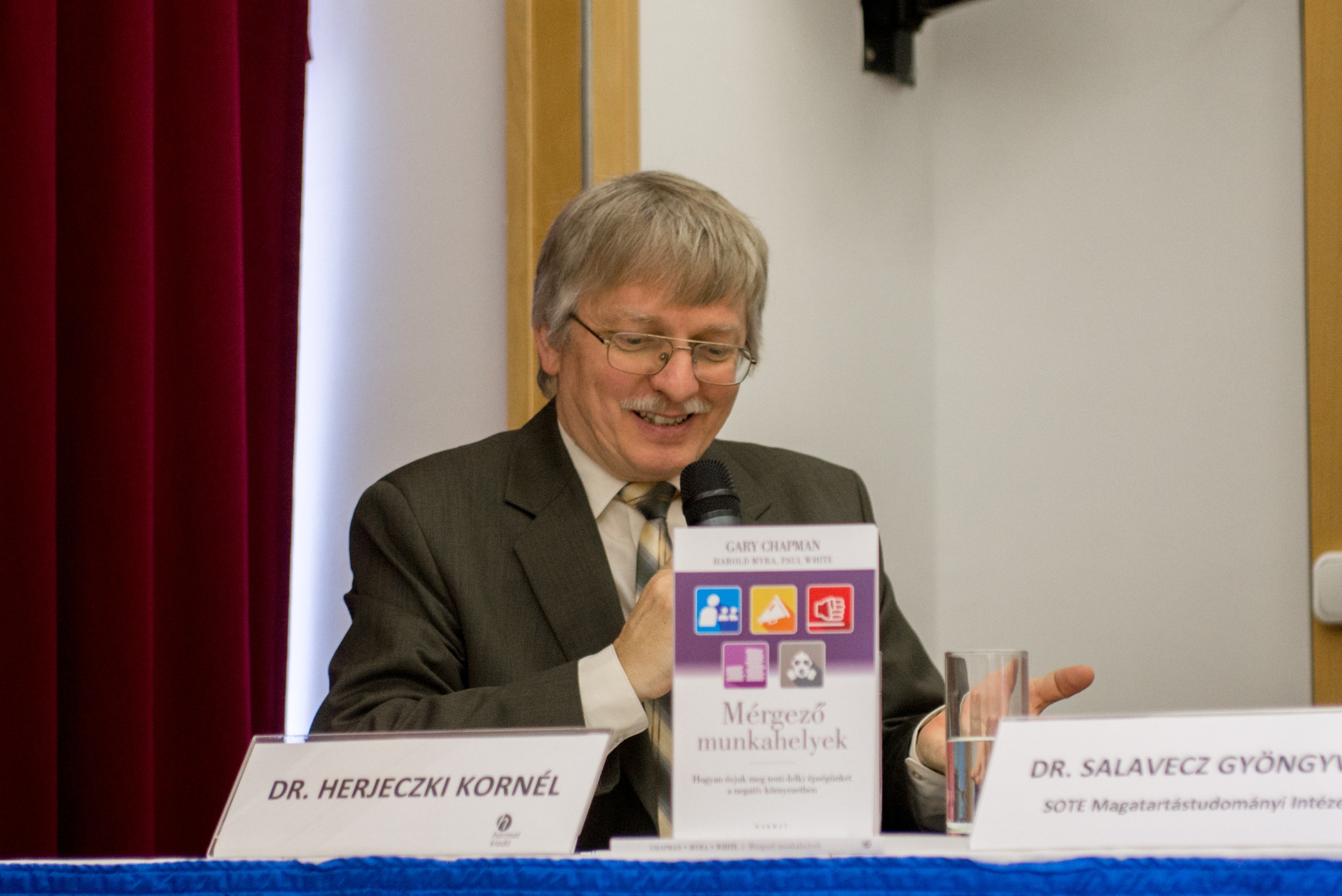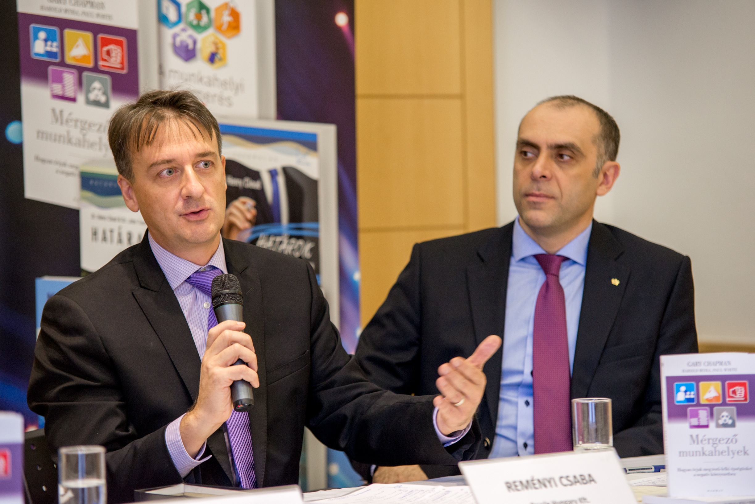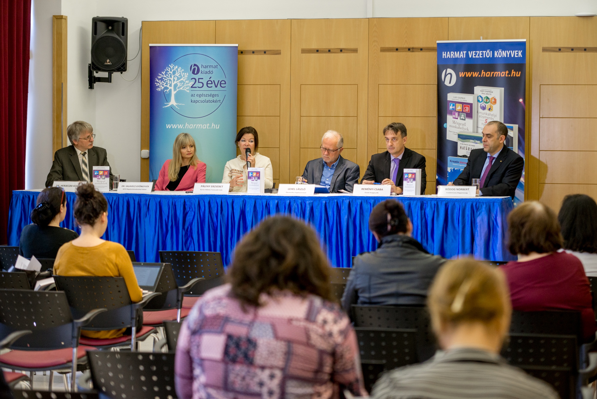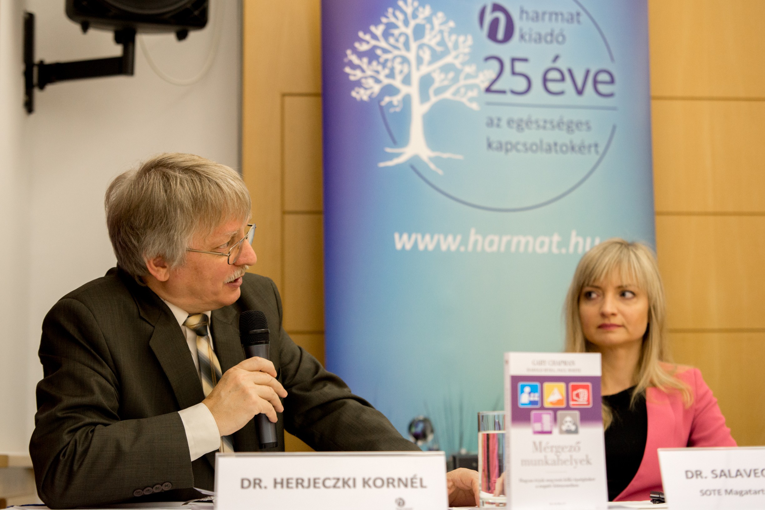 Budapest, 2016. november 22. – A nemzetgazdasági szempontból is komoly figyelmet követelő munkahelyi stressz témájában tartottak ma az Aranytíz Kultúrházban könyvbemutatóval egybekötött sajtóbeszélgetést, amelyen felszólalt többek között Lehel László, az Ökumenikus Segélyszervezet igazgatója, dr. Salavecz Gyöngyvér, a SOTE Magatartástudományi Intézet Munkahelyi Stressz Kutatócsoportjának tagja és Reményi Csaba, az Oracle Hungary Kft. ügyvezetője.