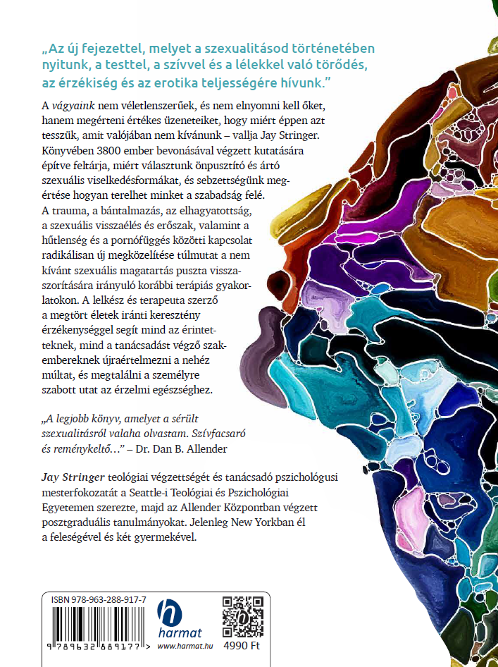 A vágyaink és magatartási mintázataink tükröt tartanak elénk, hogy milyen sebekből fakadnak a függőségeink, és mire lenne igazából szükségünk – vallja Jay Stringer. 3800 ember bevonásával végzett kutatására építve feltárja, miért választunk önpusztító és ártó szexuális viselkedésformákat, és sebzettségünk megértése hogyan terelhet minket a szabadság felé. A trauma, a bántalmazás, az elhagyatottság, a szexuális visszaélés és erőszak, valamint a hűtlenség és a pornófüggés közötti kapcsolat radikálisan új megközelítése túlmutat a nem kívánt szexuális magatartás puszta visszaszorítására irányuló korábbi terápiás gyakorlatokon, és személyre szabott utat kínál a gyógyuláshoz és az érzelmi egészséghez.